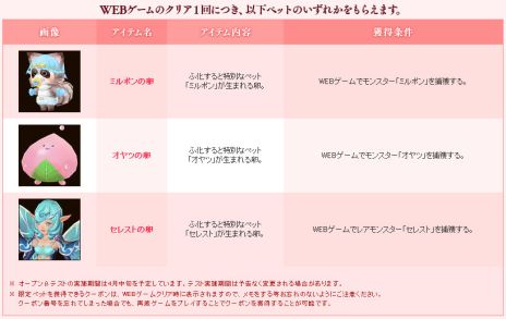▲WEB ゲームをクリアするだけで貰える「限定ペット」