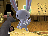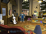会話はテキスト表示されるものの,消えるのが早いので読むのが大変だが,コミカルな絵柄,SamとMaxの軽妙な掛け合い,シブい4ビートジャズのBGMなどが独特の雰囲気をうまく出している。アドベンチャーゲームが好きな人はプレイしてみよう。