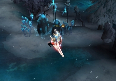 その先には凶悪なモンスターがはびこる凍てついた湖が広がり,一体の美しい氷像が何かを指し示す様に寂しく立っています。