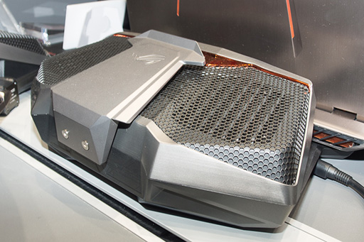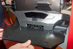 本体部分は,17インチ級のゲーマー向けノートPCとしては比較的薄く軽いように思えた。自宅でゲームをプレイするときは,液冷システムを使って最大パフォーマンスを発揮し,外出先でプレイしたい場合はノートPC本体だけを持ち出すといった使い方を想定しているようだ。