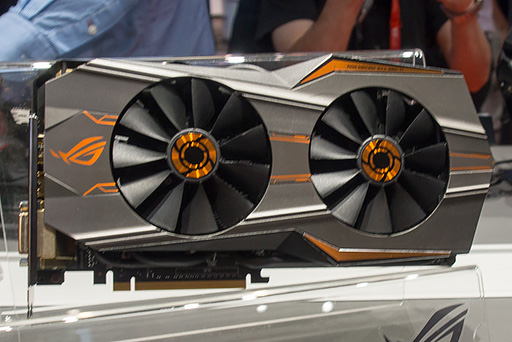 グラフィックカードでは「ROG Matrix GTX 980Ti Platinum」が披露された。リファレンスカードと比べて,30%程度まで静音化しつつ,冷却性能は25%向上したDirectCU IIクーラーの搭載が特徴とのことだ。