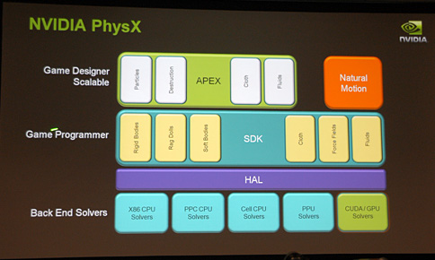 PhysXの正式名称はAGEIA PhysXからNVIDIA PhysXへと切り替わった一方,サポートされるハードウェアに変更はない。x86 CPUやPhysX PPUはもちろん,Xbox 360やWiiのPower系CPUやCellプロセッサも継続的にサポートされる。