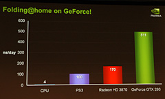 NVIDIA側の実験では,GeForce GTX 280を利用したFolding@Homeパフォーマンスは,PLAYSTATION 3の約5倍だったという