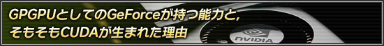 言うまでもないことだろうが,CUDAはGeForceのGPGPUモードで動作する。そのため,GPGPUモードのことを,NVIDIAは「CUDAモード」とも呼んでいる。