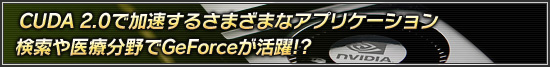 一つはCUDA 2.0の対応GPUで,GeForce GTX 200シリーズ専用ではなく,既存のGeForce 8/9シリーズでも利用できるものだということ。