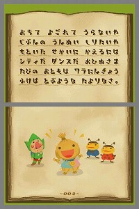 絵本の1ページ目に引き込まれたチンクル。彼の冒険は、絵本のページに次々と描かれながら進みます。旅の途中で手に入る「ふう せん」を使えば、過去に完成させたページに戻ることができ、そこでの行動が今いるページに影響を及ぼす「バルーントリップ」に出 かけることができます。絵本のページを行き来しながら、チンクルの旅は続きます。