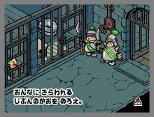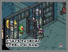 捕まってしまったチンクルたち。過去のページで女性の監守を説得すれば、次に進むことができます。