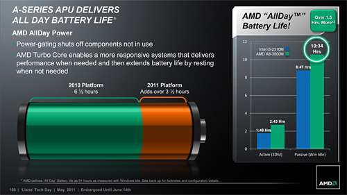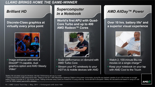 ところで,Llano Tech Dayのオープニングに登場したRick Bergman上級副社長は,ノートPC向けA-Seriesにおける3つのポイントを下記のとおり挙げていた。