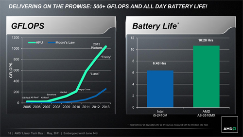 『スーパーコンピュータ並みの性能を備えつつ,8時間以上のバッテリー駆動を可能としたノートPC』がいま実現する」と宣言。500GLOPS超の浮動小数点演算性能と,Windowsアイドル時で10時間34分のバッテリー駆動とがA-Seriesで実現したと明らかにした。