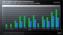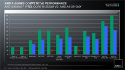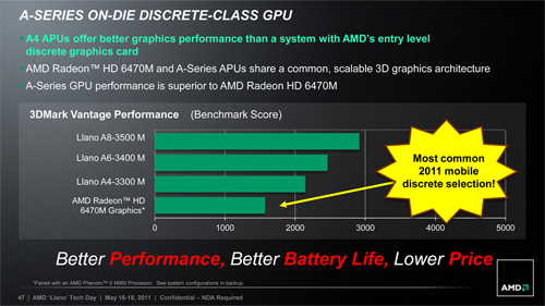 ノートPC向けA-Seriesのグラフィックス性能。ノートPC向け単体GPUの現行モデル,Radeon HD 6470Mよりも優れた性能を示すとされる