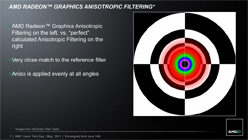 「統合型グラフィックスとしては画期的」とAMDが謳う,高精度の異方性フィルタリングをサポートするのもA-Seriesの特徴。上のスライドは,左がA-Series,右がSandy Bridge世代のCore iシリーズで統合される「Intel HD Graphics 3000」を使ったときの,ぞれぞれ異方性フィルタリング品質テストの結果とされるが,差は歴然だ