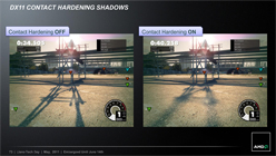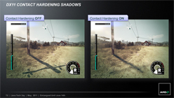 現実世界だと,地面の固さによって影の映り方は異なるが,これまでは単調なシャドーレンダリングになっていた。しかし,DirectX 11でContact HardeningをONにすれば,より自然に影を表現できるという
