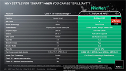Demers氏によれば,このSumoコアは,いわばATI Radeon HD 5000シリーズと同6000シリーズの中間世代という位置づけとなるようだ。Llanoでは,400コアの「BeaverCreek」(ビーバークリーク,AMDの内部コード名は「Super Sumo」)と,240コアの「WinterPark」(ウインターパーク),2種類の統合型グラフィックス機能が用意されているが,2 CPUコア+240 GPUコアのA4-3300Mでもグラフィックス性能はノートPC向け単体GPU「Radeon HD 6470M」より高く,これが「単体GPU並みの性能」を謳う背景にもなっている。