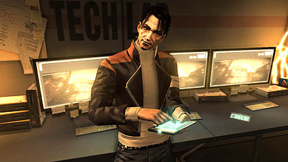 サイバーセキュリティを担当するフランク・プリチャード。インフォリンク(内耳にインプラントされた通信機器)を通じ、アダムの戦いに役立つ情報を知らせてくれる