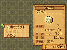 酒場では様々な人々から寄せられる依頼を受けることが出来る。達成すると青い花で表わされた交流度がアップ!どんどん依頼をこなして交流度を上げて行こう。また、依頼には期限があるので要注意。