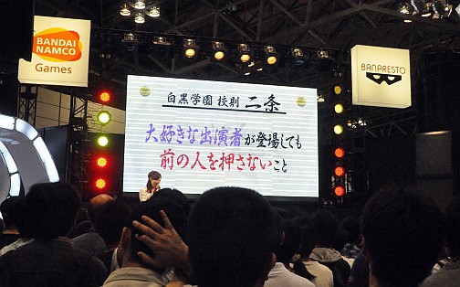 イベントは「ヴァイスシュヴァルツ ポータブル」の舞台である,白黒学園の授業という形で進行していった。イベント内容は授業科目,来場者は生徒という設定だ