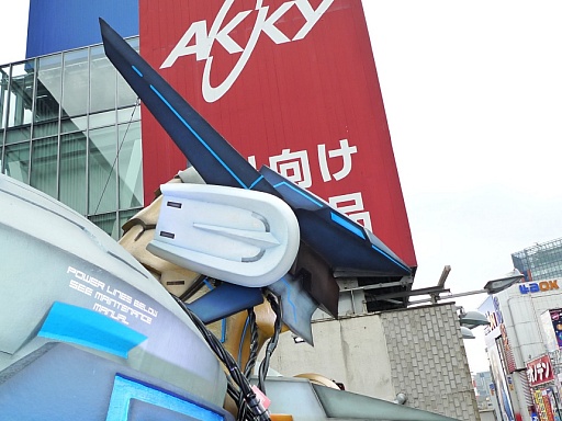巨大ジェフティが設置されているのは,秋葉原の中央通り交差点付近にある志村無線ビル(東京都千代田区外神田1-12-2)。「Z.O.E. HD」の壁面広告があるのですぐ分かるはず