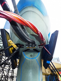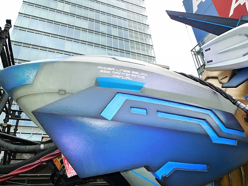 ここからはビルの屋上に立ち入らせてもらっての撮影。ゲームに登場するジェフティの設定どおりといったサイズだろうか。間近で見るとかなり迫力がある