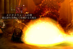 炎と氷の属性では,空中から地面に向かって大きめの魔法弾を発射する。着弾後に爆発して広範囲の敵を巻き込めるため,戦闘中の味方の援護に使いやすい。雷の属性の時は,周囲に落雷を発生させる魔法を発動。ウィザードの魔法の中でもかなりの攻撃範囲を誇る強力な魔法だが,MP消費も大きいので多用は禁物だ。