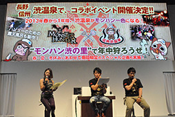 ![画像ギャラリー No.027のサムネイル画像 / [TGS 2012]新武器「操虫棍」の紹介や,ジャンプ状態の重要性が開発陣から語られた「モンスターハンター4」ステージイベントをレポート](/games/140/G014036/20120921033/TN/027.jpg) 信州の渋温泉とのコラボも。期間は2013年から1年間を予定しているとのこと |