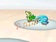 「りんしょう」は、2 匹で使うと、あとのほうは威力が倍に! みんなで歌おう! |