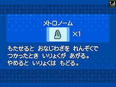 珍しい道具「メトロノーム」を持っているぞ! 歌って踊るポッチャマには、ピッタリの道具だ! |
