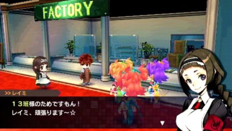 ムラクモ13班を応援するレイミ。彼女はファクトリーで防具を取り扱う。新商品が開発されたら、すぐに手に入れよう