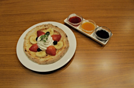 試される画才 ミニデザートピッツァ(780円)は,絵を描くようにソースをかけながら,その味わいを楽しもう。