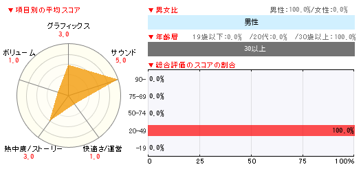 グラフィックス サウンド 快適さ/運営 熱中度/ストーリー ボリューム 3 5 1 3 1