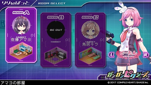 「イベントパート」「ルームセレクトパート」「アクションパート」の3つのパートに分かれている。物語はイベントパートを中心に進んでいき,ここで新たなミッションが発生すると,ルームセレクトパートに移行,そこで潜入する部屋を選んでアクションパートを開始するという流れだ。