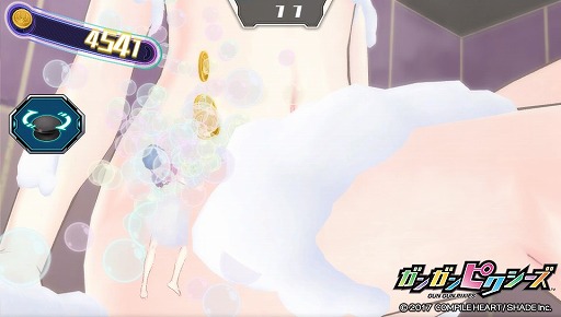 入浴中の女の子を撃つと大量のピコインが出現。しかし,いくら撃っても泡を消すことはできない……