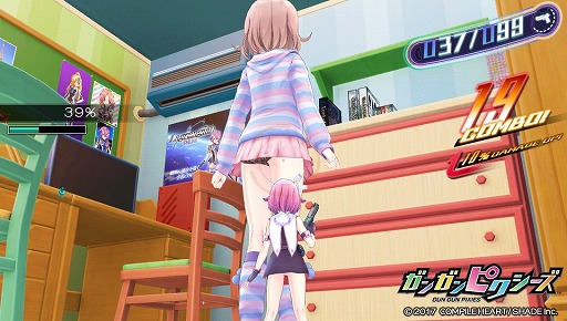 小さな宇宙人となって女子寮に潜入し,女の子達の生活をこっそりと観察するというコンセプトはとても面白く,コンパイルハートらしいユーモアのあるお色気をたっぷりと楽しめる「ガンガンピクシーズ」。癖のあるジャンプの挙動や,狭い場所でのカメラの動きにちょっぴり引っかかるが,狭い場所にあるピコインの全回収は必須ではないので,戦いやすい場所で陣取ろう。