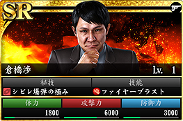 ・クランカード「倉橋渉SR」 ・コスチューム「黒服」 ・アイテム「虹饅頭」 |