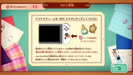 スペシャルコインが手に入る。ナゾトキチャームをタッチするとコインが手に入るが,タッチできるのは1日1回のみ。なお,初回のタッチ時のみ衣装がそのままもらえるとのことだ。