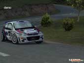 イマジニアが12月29日に発売する「コーリン・マクレー ラリー2」だが,海外でのシッピングを受けてかどうか,Finalβ版(クオリティとしては,ほぼ製品と同等といってもよいだろう)のScreenshotsを入手できたので,公開しよう。 実は管理人はイマジニアまで押しかけて,動いているものを見せてもらって遊ばせてもらったのだが,今まで多くの記事を載せてきたプレビューバージョンに比べ,製品ではさらにレベルアップしている感じだ。 パッと見に「おや?」と思ったのがスノーステージの描写。タイヤの跡などや全体的な雰囲気を含め,1歩上のレベルになった印象。かつてのScreenshotsと見比べてみてもそう思うので,あながち間違いでもないだろう。 また,もっとも変化があったのは,嬉しいことに挙動周り。ターマック,グラベル,スノーが一段と特徴的になり,スノーなどは脇にタイヤを突っ込むと明らかにタイヤを取られる感じがする。これはForce Feedbackでやったらスゴそうだ……。それに伴い,グラフィックス回りの挙動も変化した。かつてのバージョン以上に,ハッキリと車体変化が分かるようになった。ドリフト中の車体の傾きが,ココロなしか少し大きくなったというか……。続報を待つべし。 いま後悔しているのは, ・コクピット視点があったかどうか ・ネットワーク対戦の具合 を調べられなかったことか……次までには必ず! ちなみにこのScreenshotsは,メニュー状態でしばらく放っておくと勝手にやってくれるオートデモのScreenshots。