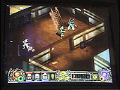 ずいぶん前から当サイトでもいくどかNewsを掲載してきたが,このThrone of Darknessの特徴は,我々日本人にとっては妙な違和感を感じる摩訶不思議な世界観にある(欧米人にとってはKewlなオリエンタルムード満載なのだろう)。ダンジョンは和室をメインとした構成となっているが,普通の日本家屋にはない鎧兜や仏像などがあちらこちらに置かれているのもナカナカ。なんとなく,昔よくあった「勘違いされがちな日本」をそのまま映像にしてちょっとSF風味を加えたような味付けになっている。 ゲームシステムもインタフェースも基本的にDiabloを踏襲しているが,プレイヤーをサポートする仲間(NPC)とグループを組み,シングルプレイでも複数キャラクターが一緒に行動できることが一番大きく異なる点だ。4人までを仲間にできるのだが,得意とする攻撃方法によって仲間には7種類が存在するらしい。最大の4人を仲間にした状態では,魔法や飛び道具が画面狭しと飛び交う乱戦模様が見られるが,プレイヤーキャラクターをそれらの攻撃エフェクトで見失わないのは秀逸なデザインセンスのなせるワザかもしれない。 プレイヤー側がパーティでの行動であることを受けて,敵となって現れる"侍"や"足軽"(正式なユニット名ではなく,見た目で勝手に呼んでるだけだが)は,強めに設定されているようだ。ファンタジーに登場する有象無象のモンスターではなく,侍や足軽といった"人間"が原則の形状(?)のせいか,瞬時に敵の種類を把握するのが難しい印象を受けた。しかし軍旗を5本以上も襟巻きのように背中に背負っている足軽が登場したときには,かなり強烈なインパクトだった。 シングルプレイのストーリーは非常に長く,踏破するエリアもかなりの広さが用意されている。また,マルチプレイでは35人のプレイヤーが同時にプレイできるなど,なかなかに特徴的なタイトルとなっている。さまざまな詳細はまだ不明なのだが,会場でパッと見た目の感想は「ぜひプレイしてもらいたい」という気分。今年8月の発売に向けて,現在はゲームバランスの最終調整に入っているとのこと。国内販売は未定だが,とりあえず製品版はプレイしてみたいものだ。 (C) 2001 Sierra On-Line,Inc. All Rights Reserved. Sierra, the "S" Logo and Throne of Darkness are trademarks of Sierra On-Line, Inc. The Click Entertainment Logo is a resistered trademark of Click Entertainment,Inc. Windows is a registered trademark of Microsoft Corporation. Pentium is a registered trademark of Intel Corporation. Any other company names and/or products are the property of their respective owners. designates trademarks registered in the U.S.A, which may be registered in Certain other countries.