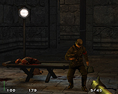 実にすばらしいデキを見せていた。QuakeIIIのエンジンを使用していることからも分かるように,動作については問題なし。登場する武器も短銃,時限爆弾,火炎放射器,ライフルなど通常のFPSに登場するような武器はほとんどフォロー,狙撃やダッシュなども可能だった(もちろん犬もいるぞ)。それから,武器の演出もイカしたものが多く,とくにデモの中では火炎放射器のエフェクトなどが素晴らしかった。敵がじわじわと燃え上がり死んでゆく様子は,残酷だがついつい見惚れてしまうといってもよいだろう。ちなみに,会場でデモとして見せていたムービーがあまりにも美しいので,見とれて立ち止まる人多数。周辺は非常にゴッタ返していた。