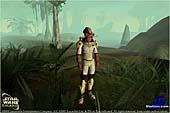 以前に「ここ」でお伝えした,MMORPG「Star Wars Galaxies」で使用できるプレイヤーキャラクター"モン・カラマリ"の3D Screenshotが公開された。マウスでつかんでぐりぐり回せるので周りの風景も楽しめる(後ろの方に恐竜のような生物が……)。公式サイトの「ここ」でぜひチェックしてみよう。