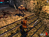 さて今回イマジニアが発表したのは2作。"リッジ"風レースゲーム「e-Racer(仮称)」と,ファンタジー3Dアクションゲーム「ブレード オブ ダークネス日本語版(仮称)」だ。日本語がさほど要求されないレースゲームは英語版のまま,ストーリー展開などが英語のままではツラい3Dアクションは日本語版でという,ユーザーにとっても非常にありがたい展開となった。 ■e-Racer e-Racerは,当サイトでもデモ版紹介などをしている,"シビアじゃない"レースゲーム。同社のMobil1 RALLYやコーリン・マクレー ラリー2などのシビア路線のレースシムと違い,よりアーケードっぽく遊べるお気軽な作品だ。 クルマ自体は実在するものではないが,どれもどこかで見たようなデザインばかり。どれか気にいったクルマを使い,ショッピングアーケード,航空母艦の甲板,雪道など全14種のコースを疾走するわけだ。クラッシュすれば車体はへこみ,エンジンブロー(?)すれば煙を吐く,そんなRageらしいグラフィックスに凝った演出も,見ていて楽しいところ。 しかしこのe-Racerの本領は,そんなところではない。なんといってもこの作品の最大のウリは「完全オンライン対戦仕様」であるというところ。CMR2でちょっと悲しい目にあっていたオンラインレーサーには朗報だろう。 しかも,だ。 単に"オンラインちゃんと対応してまーす"というレベルではない。DiabloII同様,ゲーム上で"ネットワーク参加"とするだけで(事実上パスワードを入れるだけで),専用ロビー上にあっさり参加できるのだ。 しかも,だ(こればっか)。 レース結果はリアルタイムで集計される。世界ランキングや過去のレース履歴などすべてのプレイヤーのデータがサーバーに蓄積されて,容易に世界デビューが果たせるわけだ。ちなみに蓄積されるデータは主に, ・個人別レース履歴 ・ドライバーズポイント世界ランキング ・所属チーム別ランキング ・コース別個人ベストラップ ・世界ベストラップ など。ほかにも山ほどのデータが蓄積される,かなり嬉しい仕様だ。ネットワークレーサーなら,これをやらずにナニをやる? とりあえず当サイトにUpしたデモ版で腕を磨け! ・発売予定:10月上旬 ・予価:7800円 ・動作環境:Windows 98/Me/2000,PentiumII/300MHz(PentiumIII/450MHz以上推奨),メモリ64MB(96MB以上推奨),空きHDD容量430MB以上 C 2001 Rage Games Limited. All rights reserved. ■ブレード オブ ダークネス 一方のブレード オブ ダークネスは,デモ版紹介を含め,当サイトでも何度も何度も紹介したファンタジー3Dアクションゲーム。最近の作品でいえば"Rune"などに近い雰囲気だが,その「光の描写」(というか陰の描写?)が美しいのが特徴。本ページ下段の画面写真3枚を見てもらえれば分かるだろう。また光の描写以外にも,モーションキャプチャシステムによる1700以上の滑らかなアニメーションパターンも魅力だ。 ゲームシステムとしても凝ったものになっており, ・剣,斧,槍,弓,盾,魔法のアイテムなど100種類以上の武器 ・100種類以上のトラップの謎解き ・壊したり掴んだり投げたり(そして武器として使ったり!)できる100種類以上のオブジェクト(テーブル,グラス,イスなど) ・進化したAIシステムによる,敵キャラクターの行動の広がり(愚鈍で野蛮なオーク,群れをなして襲ってくるダークナイトなど) などが特徴。また「マルチプレイアリーナモード」なども搭載しているので,vsプレイヤーの遊び方も問題ない。 なにより嬉しいのは,完全日本語版で登場するということ。それまでは「ここ」から英語デモ版をダウンロードして待っているべし。 ・発売予定:今秋 ・予価:未定 ・動作環境:Windows 98/Me,PentiumII/400MHz(PentiumIII/500MHz以上推奨),メモリ64MB(128MB以上推奨),空きHDD容量750MB以上(+130MB以上のSwap領域) Software:(C) Rebel Act Studios S.L.2001. Published by The Codemasters Software Company LTD("Codemasters") All Rights Reserved. "Rebel Act Studios"(R) is a registered trademark owned by Rebel Act Studios S.L."Codemasters"(R) is a registered trademark owned by Codemasters. "Severance" and "Genius at play" are trademarks of Codemasters. "Blade of Darkness" is a trademark of Rebel Act Studios S.L. Unauthorised re-sale, arcade use, charging for use or extraction of this product or any trademark or copyright work that forms part of this product is prohibited.