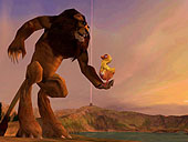 ECTS特集の「ここ」でお伝えした"Black&White"の公式アドオン,「Black&White:Creature Isles」の画面写真2点を入手したので掲載しよう。 Creature Islesは,プレイヤー自身がクリーチャーを育てるのではなく,クリーチャーに"タイク"と呼ばれるヒヨコのようなキャラクターを育成させるのを鑑賞するという作品。モリニューらしいユーモアにあふれた"別な楽しみ方を提案する"作品だといえるだろう。クリーチャーを使って楽しむミニゲームも豊富に用意される予定とのことだ。
