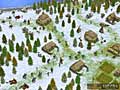 雪の降り積もった村における,人間とジャイアント系モンスターとの戦闘シーンとなっている。(Asakura)