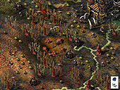 本作はアメリカ,ヨーロッパで好評を博した「セトラーズ」シリーズの最新作。ゲームは箱庭感覚のRTSで,プレイヤーはマヤ,バイキング,ローマの3種族から一つを選んで植民地の統治を行なうことになる。シリーズ全般を通しての大きな特徴は各施設同士がリンクしており,加工のネットワークを作り上げなければならない点だろう。例えば食料としてパンを生産する場合,小麦畑で小麦を収穫したら,粉ひき小屋で小麦粉にし,次にパン屋でパンを焼くという行程を経てようやくパンが完成するのだ。もちろん,各施設の距離が遠ければ小麦をパンにするまでに時間が掛かってしまうわけで,街を設計する際には各建物同士の立地条件も考えなければならない。とまあ,こう書いてしまうと非常に難しいのでは? と腰が引けてしまう人もいるかもしれないが,実際のゲームでは施設を建設するだけで後は労働者がやってきて勝手に作業を始めるので,初心者でもお手軽に楽しめるようになっている。それから,プレイヤーは自分の勢力の拡大を目指すだけではなく,他勢力の牽制にも気を配らなければならない。マップ上にはライバル勢力も存在しており,ゲームが進行して領土が広がっていくと自然と国境が接することになる。そうした場合,他国の拡大を押さえるために兵を派遣して国境を警備したり,積極的に攻め込んで他国の勢力拡大を抑えておく必要があるのだ。さらに今回は共通の敵としてダークトライブという悪の種族(?)も登場するので,時にはほかの勢力と共同して戦う必要性も出てくるぞ。 「IV」での新要素もざっと紹介しておこう。先に紹介した3種族によるプレイやダークトライブの登場のほかに,ビジュアル面ではグラフィックスの一新や画面のズームイン/アウト機能が搭載されている。また画面をよく見るとウサギ,シカ,イノシシなどもウロチョロしており,非常によい雰囲気だ。これ以外にも最大8人のマルチプレイだけではなく協力プレイも可能。さらにボイスチャット機能も搭載されているので,マルチプレイはより大きな盛り上がりを見せることになるだろう。ワールドランキング機能もあるので,腕に自信のあるユーザーは挑戦してみよう。 なお,「ザ・セトラーズIV」の発売日は12月7日,価格は9800円となっている。(Murayama) ※なお,本家サイトには体験版もあるので,「こちら」もどうぞ! (C)2001 BlueByte