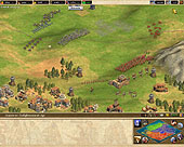 ゲームは,まず18文明から自分の国家を一つ選択し,首都をマップの視界領域に建設するところから始まる。そこから,農民ユニットを使って農作や狩りなどで食料を得たり,金や木材などの資源採取を行う。当初は,まだスカウトを送り込んでない地域は"Fog of War"と呼ばれる黒い闇で覆われているし,都市の周辺には学校などの施設を建てるなど,インタフェースも含めてAoEのノリに近い。