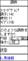 コーエーのほかの携帯電話向けサービスと同様,毎日コマンドをサーバーに送って,次の日にその結果がメールで送られてくるというシステムだ。そしてその結果を見て,またコマンドを送って……と,ゲームが進行していく。面白いのは,同じサーバーを使っているほかのプレイヤーと世界を共有している点。つまり,自分の馬が負けた相手も,誰かほかのプレイヤーの馬だったりするわけ。つまり,現実世界での1日が1ターンのマルチプレイゲームなのだ。
