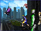 NC Softが2003年にリリース予定の「City of Heroes」(以下,CoH)は,Cryptic Studios社が開発するスーパーヒーローものの異色MMORPGである。一つのサーバーで2000人程度のサポートを予定しており,グラフィックス面でもGeForce4に最適化しているというほど美しい。プレイヤーは,パラゴンシティーという仮想都市を舞台に,地下の魔軍やギャング,エイリアンなど10種類の敵軍団を相手に戦うことになるのだ。 最近公開されたばかりの映画「スパイダーマン」では,主人公が自分のコスチュームをデザインするシーンがあったが,もちろんCoHでもヒーローごとにユニークなものが用意されている。デモを紹介してくれたCryptic Studios社の開発者は,各部の色や胸のエンブレムなどのコスチュームデザインから,飛行能力や放射能力といった特殊パワーを含めると,2.44×10の24乗(2440兆の1億倍!)という膨大な数になると話してくれた。それらの中には,スパイダーマンのようなボディスーツのようなものや,ウィザードのようなたるみのある容姿,さらには「日本のアニメや戦隊ものにも影響を受けている」と開発者がいうように,昆虫系のアーマーを纏ったヒーローキャラクターもいる。もちろん,プレイヤー同士でギルドを作り,同じコスチュームやエンブレムで統一することも可能になる。 パラゴンシティーは,悪の軍団の入ってこないニュートラルゾーンを中心に,"ハザードゾーン"と呼ばれる臨戦区域からなっている。スラム,工業地帯,地下下水道などだ。ゲームはミッション制になっていて,さまざまな仕事の中から好みのものを選んだプレイヤーは,最大で8人までのグループを組んで問題の解決に乗り出す。ミッションの成功によってプレイヤーの"知名度"が上がり,街の看板や新聞に名前や写真が掲載されるらしい。そうやって知名度がランク付けされて,プレイヤーの名前が上位にランキングされることで,新しいスーパーパワーが手に入ったり,パラゴンシティーの新しい臨戦区域への進入権を得ることになる。 特殊能力についても詳しく説明しておくと,各能力は複数のステータスからなっている。例を挙げておくと,Fireballは"ダメージ" "スキル" "範囲" "コントロール"という四つのステータスからなっており,プレイヤーがポイントをどのように振り分けていくかによって,効果の違ったものになる可能性も大いにある。これらのパワーは,繰り返して使うことで経験値を得るシステムになっているようだ。エネルギーパワーは購入する必要があり,モンスターや魔軍を倒して得た金銭でアイテムを購入しなければならない。ほかにも,敗れたときに病院で蘇生するのにも,お金を使用する。また,なかなかに面白い要素として家(基地?)の購入がある。ギルドで金銭を持ち寄れば,敵と戦うための本部を設置できる。さらに,街の中心地にそびえる超高層ビルを購入することだってできるのだ。 ゲームストーリーはデザイナーによって用意されているが,大部分はプレイヤーの行動によって変化していく。テレビ番組のエピソードのように,負けては引き返し,さらに強力な部下を連れてくる敵軍団の首領なども登場するのだろうか。開発が順調に進めば,年末にはベータテストも開始されるらしい。ちょっと変わった設定が気になる作品となりそうだ。(Okutani)