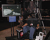 Ascension Technologies社が出展していたオプティカルトラッキング用のスキャナ「laserBIRD」は,DSP(デジタル・シグナル・プロセッサ)技術を利用してユーザーの目の動きを追い,それをゴーグルなどの映像に反映させることができる。いままでのものは,ゴーグルを被った人の首の動きのみが映像に反映されていたが,これで,よりバーチャルな体験に近づくというわけだ。 laserBIRDは軍用機のシミュレータとしての活用が見込まれているが,会場のデモのようにパワーショベルのトレーニングプログラムとの連動もできるなど,さまざまな分野で使われることになりそうだ。 このスキャナ自体の大きさは,30×9cmという非常に小型なものなので,アーケードゲームの分野で使用される可能性はあるだろう。ただ,デモを試していた人は,依然として首を左右に振っていた。右にあるものは右を向いて確かめようというのが,人間の本来の習性であるようだ……。(Okutani)