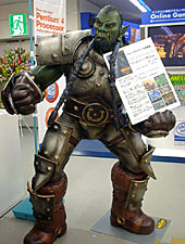10月13日,14日に秋葉原の新スポット"ラオックス アソビットシティ"で行われた「ウォークラフト III」の対戦ゲーム大会。会場の立地条件(?)の良さか,飛び入りの参加者や多くのギャラリーを交え,非常に盛況な様子だったのが印象的だ。 大会は,まず二つのブロックでそれぞれトーナメント対戦を行い,そこで勝ち上がったチームが後の決勝を戦うといったもの。中にはちゃんとした3人チームを組んで参加してきた強者もいたが,基本的にはRTS初心者や飛び入りの参加者を加えた和やかなイベントとなっていた感じである。 ただ,ゲームの迫力ある音響と飾られた「オーク君人形」に引き寄せられてか,買い物に来ていた多くの人達が足を止めて見物しており,ラオックス アソビットシティ6階の特設フロアは非常に沢山の人で賑わっていた。 大会の行方だが,さすがに3人で組んで参加してきたチームが圧倒的な力を見せつけ,終始危なげなく勝ち進んでいる様子だった。本格的な"大会"を想定していた彼らには,若干物足りない戦いだったかもしれない。 また,公開されていた日本語版の最新ビルドだが,やや「?」という日本語が部分部分で残っていたとはいえ,さらに練り込まれた出来だと感じた。発売日が遅れて(「来年の春までには!」 カプコン プロデューサー牧谷氏談)しまったのは残念としかいいようがないが,牧谷氏曰く,「せっかくのなので,前バージョンで気に入らなかった部分は全部直していこうかと思います」とのこと。日本語版を楽しみしているファンは,この言葉を信じて待つことにしよう。(TAITAI)