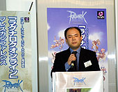 というわけで,本日開催されたのは,日本国内でガンホー・オンライン・エンターテインメント(以下,ガンホー)が運営する韓国産MMORPG「ラグナロクオンライン」(以下,ラグナロク)のプレスカンファレンス。βテスト中ながらも,これまで同人系イベント「RAG-FES」を始めとした多くのイベントが開催されているラグナロク。今回のイベントは,有料課金を中心とした"大本営発表"および,正式サービスインと同時に実装されるラグナロクの最新エピソード1.5「Attack of the Ancient」の詳細内容についてのプレス向けカンファレンスだ。 渋谷センター街隣のビル「QFRONT」にて行われた本日のカンファレンスでは,ガンホー代表取締役社長(CEO)の孫泰蔵氏と同社最高執行責任者の森下氏,ラグナロク開発元の本家グラヴィティ会長の金正律氏が来賓として出席。渋谷のド真ん中での開催だということで,QFRONT正面の巨大スクリーンにもカンファレンスの模様が流されるなど,かなり大規模な会となった。ちなみに,カンファレンス模様が流れた15:00には,会場前に200人のファン(野次馬含む)が詰め掛け,会場関係者を唸らせていたそうだ(ラグナロク人気恐るべし,である)。 カンファレンスは,孫泰蔵CEOのスピーチで開幕。「実際にプレイしてみた」と語る孫氏は,初めて触れたオンラインゲームに衝撃を受けたこと,結婚イベントに招かれるなどのエピソードを披露。「(映画)「アメリ」を見た後のような幸せな気持ちになった」と語り,来場者に本作への思いを熱く語る共に,本作の魅力は従来のRPGで得られないものであることを強調した。 ……とまぁ,その後はお偉いさん向けのお決まりの(?)スピーチが続いたので,割愛させていただこう。 さて,この日業界関係者が注目していたのが,課金/正式サービスイン/エピソード1.5の詳細についてだ。有料サービスを来月に控えているだけあって,どちらもかなり詳しく聞けた。順を追ってお伝えしていこう。 <<正式サービスインと課金について>> 当サイトの読者ならご存知かと思うが,ラグナロクオンラインは2002年8月から続いたβテスト期間を終了し,2002年12月1日より有料サービスとなる。したがって,オープンβサービスは,サービスインひと足手前の2002年11月20日(15:00)をもって終了。残りの十日でエピソード1.5の実装やサーバの最終調整を行うとのことだ。 ガンホーでは,有料サービスに伴って個人情報管理/課金管理の一元化,コンテンツの効率的な利用を目的とした2つのIDを発行する形をとる。ちょっと分かりづらいので,以下にまとめて説明しよう。 ・GungHo-ID 個人情報管理や課金管理を行うためのID。ガンホーのコンテンツを利用するために必要。 ・アトラクションID ガンホーが提供するコンテンツ毎に発行されるID。指定されたアトラクションIDを購入することで,ラグナロクオンラインを含む各種コンテンツにアクセス可能。 簡単に説明すると,ガンホーがネット上に構築した遊園地に入るための入場券が「GungHo-ID」,そこにあるジェットコースターに乗るときに必要なのがアトラクションIDといった感じだ。スクウェアが提唱する「プレイオンライン構想」にも似たシステムで,ユーザーの囲い込みとスムーズな課金が主な目的となっている。 ちなみに,現在βテストに参加しているプレイヤーは,βアカウントをGungHo-IDに変換することで,ガンホーコンテンツにアクセスできるようになる(アトラクションIDは必要だが)。 新規加入者の場合は,以下のプロセスを経てラグナロクオンラインがプレイ可能になる。 1.GungHo-IDを登録 2.アトラクションIDを取得 3.チケットを購入(ここで実際の時間単位での課金が発生する) 4.ラグナロクオンラインをプレイ (まったくもって余談だが,ID体系にはプラネットコード(太陽系惑星の略字3文字の意)などが利用される予定とのこと)。 さて,ファンが最も気になる課金についてはひと足先に告知がなされていたので,簡単に列挙しておくに留めよう。 ■料金体系 ・通常 クレジットカード:1500円(月額) WebMoney:1500円(30日) ・サンキュープライス(β感謝期間 2002年12月1〜2003年2月28日まで) クレジットカード:900円(月額) WebMoney:900円(30日) ※どちらも3か月限定の低額サービス ※βテスター/新規加入者の両者が対象 ■決済方法 ・クレジットカード ・プリペイドカード ラグナロクプレイヤーの平均的な年齢層は,16〜20歳の層である。ガンホーは今後も,随時若年層向けの決済方法を導入するとのことだが,現状の決済方法がプレイヤーの足を止めてしまわないか,ちょっぴり不安だ。 また,ラグナロクを中心にガンホーとガッチリ組んでいるビー・ビー・テクノロジー(Yahoo!BBの運営元)より,Yahoo!BB新規加入者に対して以下のような特典が付加されるとの発表もあったぞ。 ■ラグナロクBBサービス内容 ・通常のADSLサービス(Yahoo!BB/BBフォン) ・ragnarokonline.jpドメインの利用 (メールアカウント,Webサイト用ディスクスペースに適用) ・ラグナロクBB特製キャラクターシール ・ラグナロクBB特製モデムパッケージ ■2002年12月25日までの申し込み