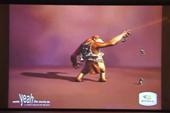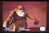 昨日12月6日に行われたGeForce FXの発表会では,「実際に動作する」GeForce FXカードを利用してのリアルタイム生成3Dグラフィックスデモが公開された。ここでは,2本めの映像の見どころを解説していきたい。 発表会と,GeForce FXプロダクトマネージャGeoff Ballew氏とのインタビューの詳しい模様は追ってお届けする。 踊って食べるモンスター ドイツの3Dグラフィックススタジオ,Spellcraft Studio社のショートCGムービーのキャラクタをGeForce FXでリアルタイムに動かしたデモ。 キャラクターのアクションが,プログラマブル頂点シェーダーを使ったボーンスキニング処理で行われているのは一目瞭然。肘と膝が折れ曲がったときの表皮の自然な伸び縮みに注目してほしい。 そしてなにより驚かされるのが,モンスターの腰布やジャケットの動き。彼のダンスアクションによる荷重移動により布が舞う様が非常に自然だ。これはいわゆるClothシミュレーションで,布そのものの挙動の物理計算はCPUが行っている。この部分に関してはGeForceFXの仕事分担量は少ない。 ムービー途中で表皮のクローズアップになるが,モンスターの皮の凹凸はプログラマブルピクセルシェーダを使ったピクセル単位にライティングを行ったバンプマッピングで表現されている。これはGeForce4 Ti系でもこなせる部分だ。 個人的には,このデモの最大の見どころは「自己遮蔽」(Self Occlusion)と「半影」(Half Shadow)に尽きると思う。 モンスターの腕の影が自分自身の体に落ちている点に注目してほしい。これが,いまだアーケードの最新格闘ゲームにも採用されず,Xboxの「格闘超人」でも最終的には実装を断念されたセルフシャドウ,自己遮蔽の表現だ。 このデモのセルフシャドウは,GeForce FXのシャドウマッピング機能を活用して生成されている。シャドウマッピングとは,光源を視点から一度Zバッファへレンダリングしてシャドウマップを生成,これを考慮して影領域を登場モデル達へ適応していく影生成法だ。マルチパス・レンダリングの一種でGeForce 3からの搭載機能なのだが,GeForce FXになって現実的に使えるようになったというところか。 影は「DOOMIII」のような真っ黒の塗り潰しでなく,影の落ちている部分の色が薄く見える半透明の影−−いわゆる「半影」−−になっているばかりか,地面に落ちている影は輪郭がボケ気味のソフトシャドウ表現になっているのも見どころだ。 そして,着ている服の影までがモンスターの体に落ちている点も見逃せない。ボリュームシャドウ技法では,ここまで徹底した影生成は難しい。シャドウマッピング技法ならではの精度といったところか。 ただし,途中視点がズームインしたときに,服の影がかなり粗めでジャギーだらけなのに気づくだろう。これはシャドウマップをフル解像度で生成していると速度的に厳しいため,解像度の低いシャドウマップを生成,これを元に影生成をしているためだと予想される。 ところで,Spellcraft StudioのWebサイトでは,ワークステーションでオフラインレンダリングされたバージョンが公開されている。今回のGeForce FXバージョンと見比べてみるといいだろう(DivXバージョンが綺麗でお勧め)。オフラインレンダリングバージョンはモンスターに毛が生えている点に注目。GeForce FXバージョンもこのくらいのファーならば生やせたと思うのだが……。 69.84MBのムービーダウンロードは「こちら」からどうぞ。(トライゼット 西川善司)