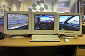 Codemastersが,来年始め頃に発売予定のレーシングシミュレーションゲーム「Pro Race Driver」は,Matrox Surround Gamingをサポートすることを発表した。 Matrox Surround Gamingは,ディスプレイ3台を一つのモニターとして扱う機能で,特にドライバー視点の時に,前面のほか左右部分まで見えるので,コーナーへの突っ込みなどのサイド・バイ・サイドでの競り合いのときなど大変重宝しそうだ。 Codemasters公式サイトの「ここ」では,3つのディスプレイを使った場合,ゲームがどのように見えるのかが分かるScreenshots(Click here to downloadをクリックするとScreenshotsをダウンロードできる)が公開されているのでチェックしてみよう。 また,Blackhole Motorsportsの「ここ」では,最新Screenshots多数を見ることができる。(Asakura)